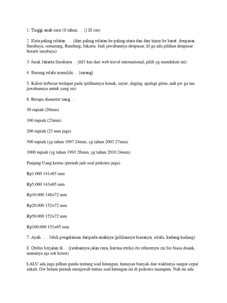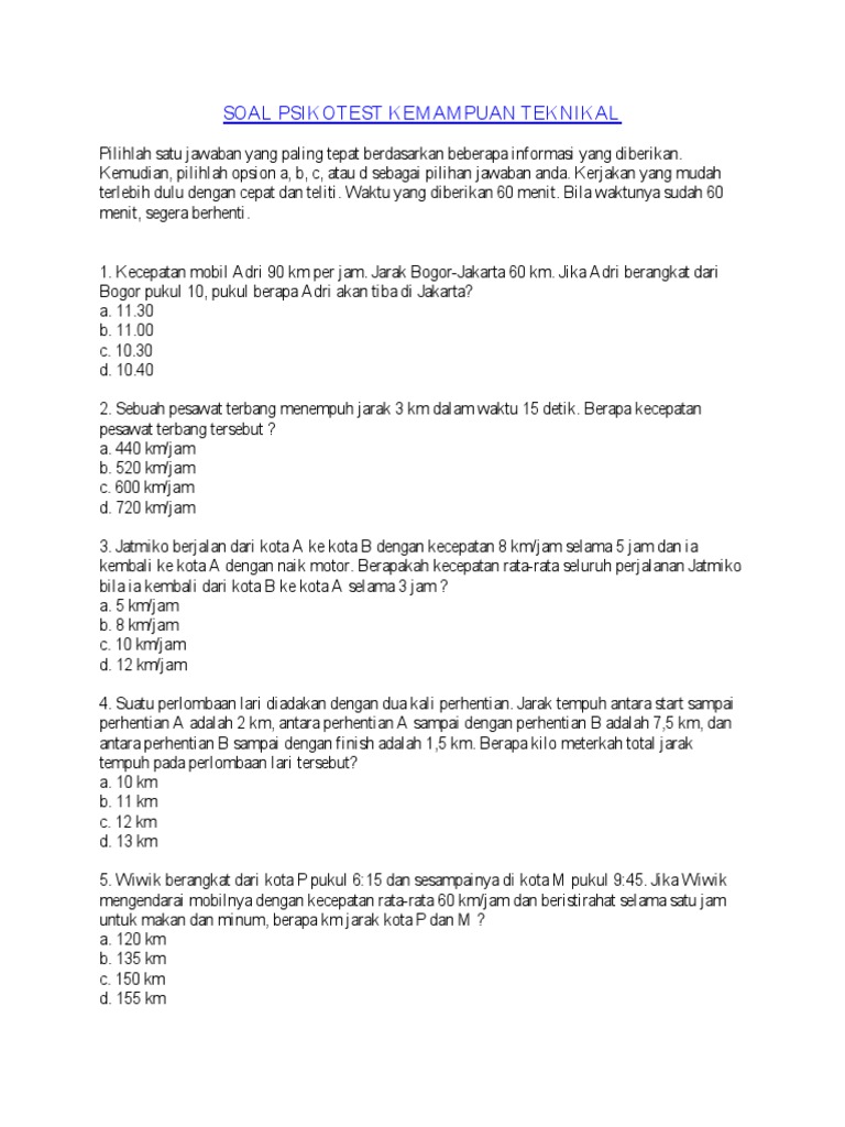 Psikotes Jarak Jakarta Surabaya Masnurul from img.dokumen.tips Agoda.com has been visited by 100k+ users in the past month Service 7/7 · more than 665 airlines · best price guarantee Read reviews and book today! Compare flights surabaya to jakarta. Dec 16, 2020 · berikut ini adalah contoh soal psikotes jarak jakarta surabaya yang bisa anda unduh secara gratis dengan menekan tombol download yang ada pada tautan dibawah ini. Jan 08, 2020 · psikotes jadi syarat bikin sim di jakarta bagaimana dengan jatim 1 km berapa meter pengertian konversi tangga dan contoh soal jarak jakarta surabaya terjual jual soal psikotes ist intelegence structure test soal psikotest ist pdf jlk9y9vj6745 contoh soal psikotes dan kunci jawabannya cerdiknya com Compare flights surabaya to jakarta. Agoda.com has been visited by 100k+ users in the past month