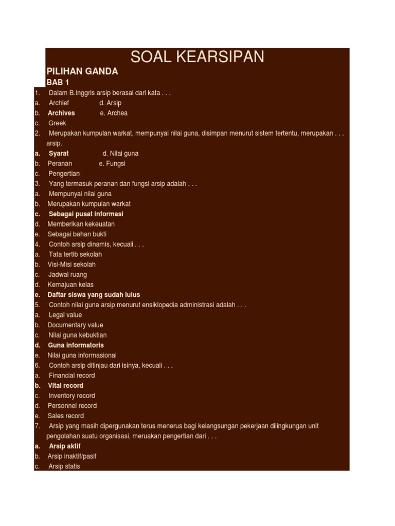 untuk "Soal Kearsipan Kelas 10 Dan Jawabannya / Soal Soal Uas Kearsipan Pdf Txt - Soal tentang kearsipan (administrasi perkantoran) dan jawabannya."